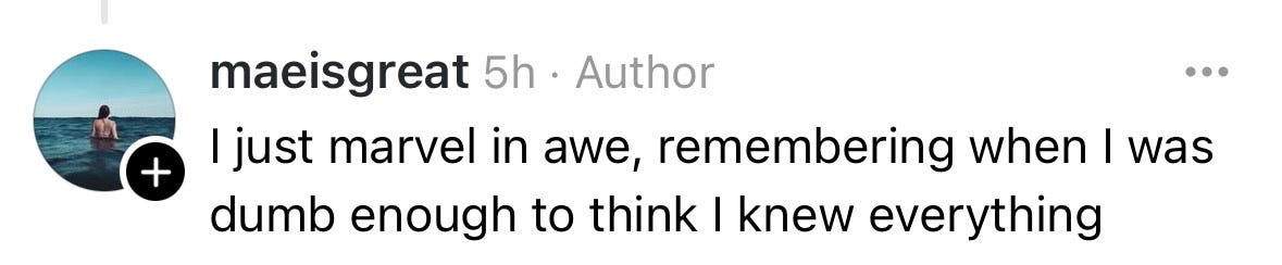 This is also the week I finished The Anxious Generation, and my favourite chapter was the one where Haidt, an atheist, gets spiritual, talking about the awe that screens are robbing us of, moment by moment. I think this diminishment of awe is a poverty defining the world right now, an inability to recognise slivers of light.